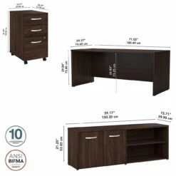 Bush Furniture Studio C 60″W Desk, 3 Drawer Mobile Ped And Low Stg Return Platinum Gray – STC042PGSU