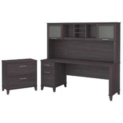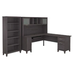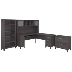 Bush Furniture Somerset 72″W L Shaped Desk With Hutch, Lateral File And Bookcase Ash Gray – SET012AG