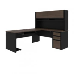 Bestar Connexion 72W L-Shaped Desk with Hutch and Pedestal in Antigua & Black – 93859-000052