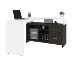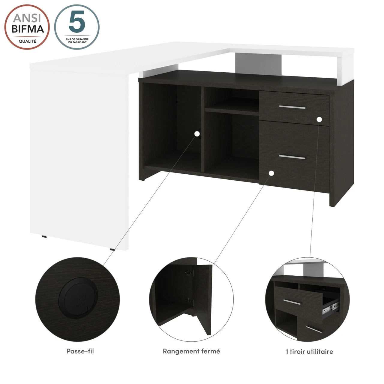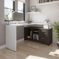 Bestar Equinox 57W x 56W L-Shaped Desk In White & Deep Grey – 115860-001732