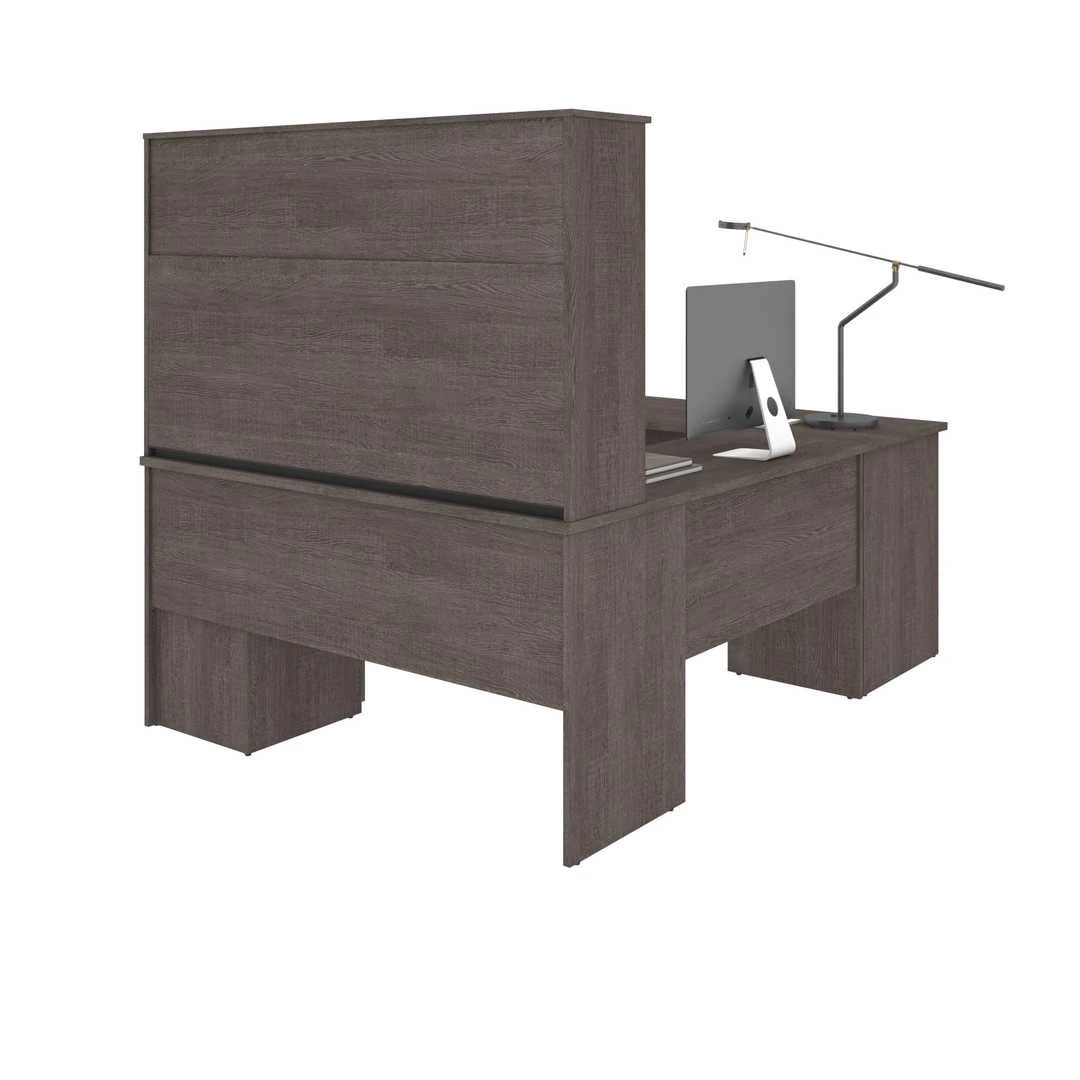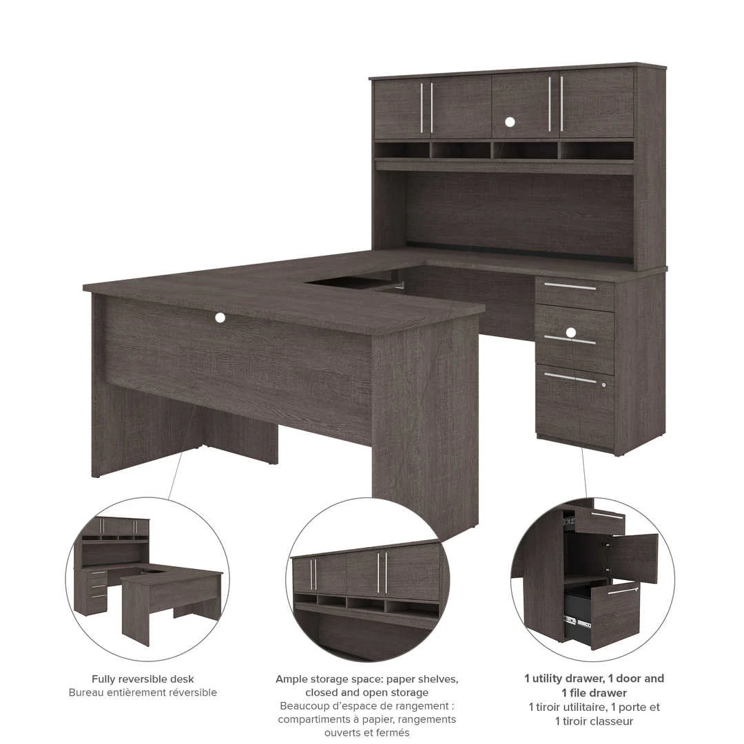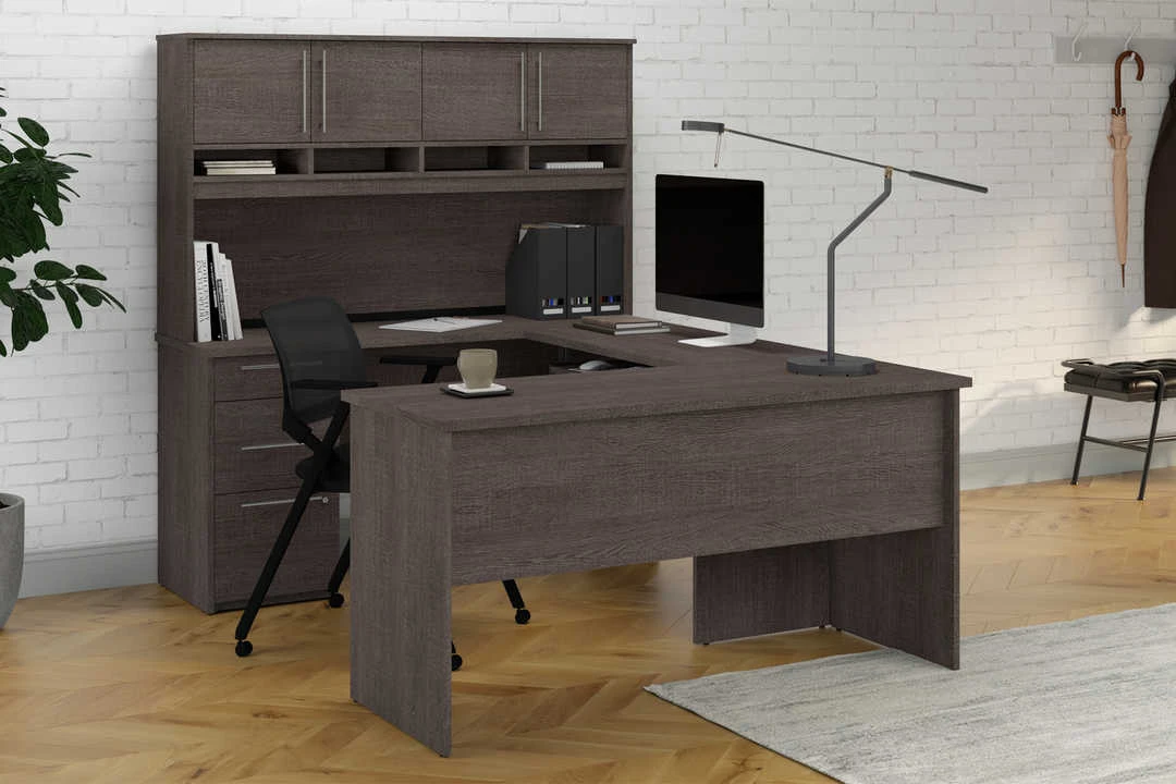 Bestar Innova U or L-Shaped Desk with Hutch in Bark Grey – 92854-000047