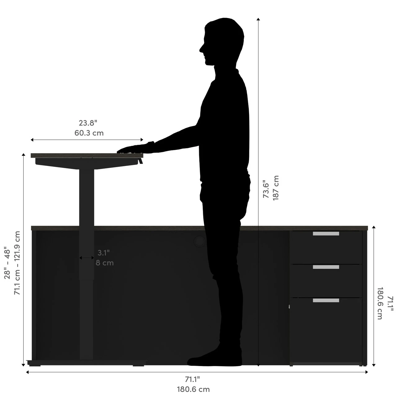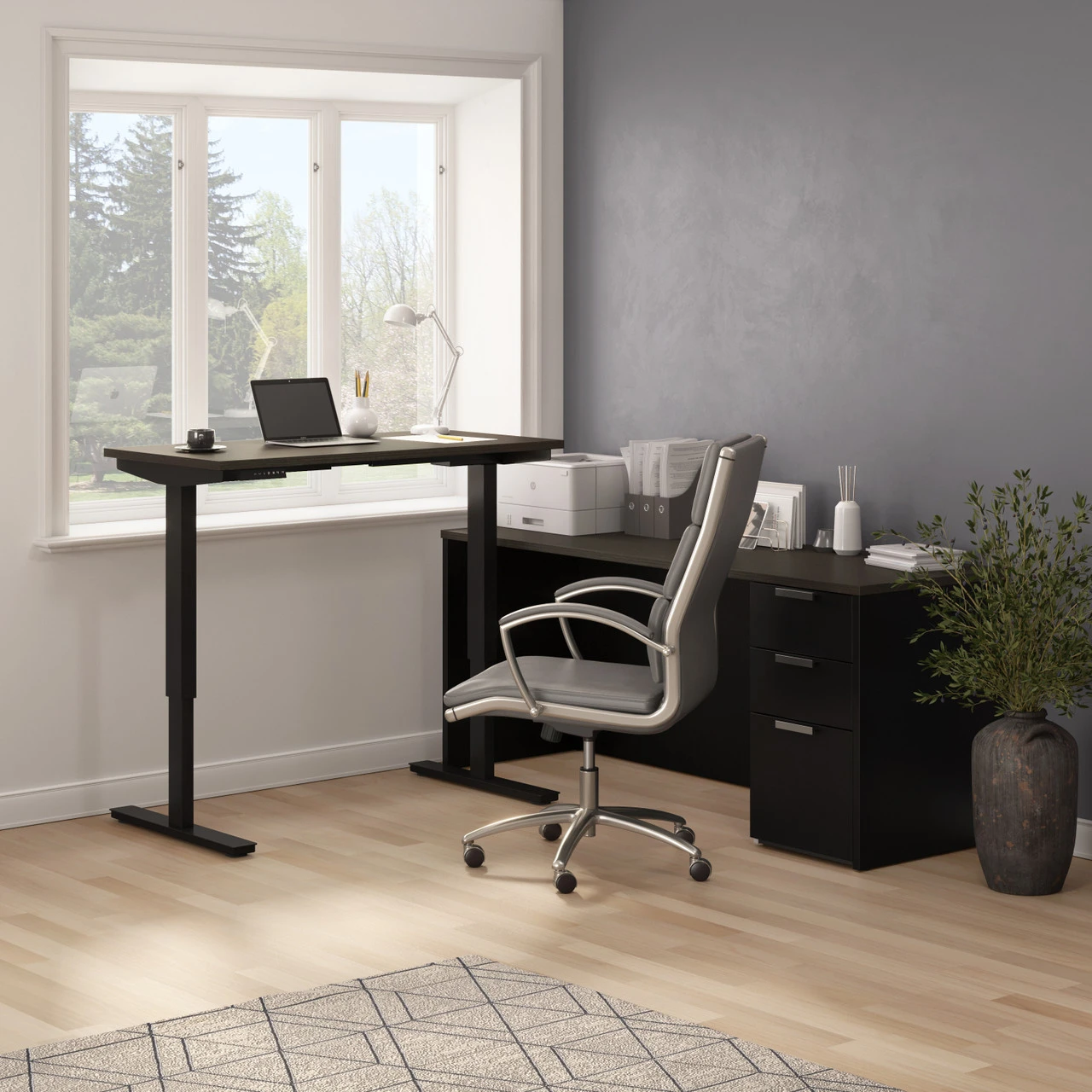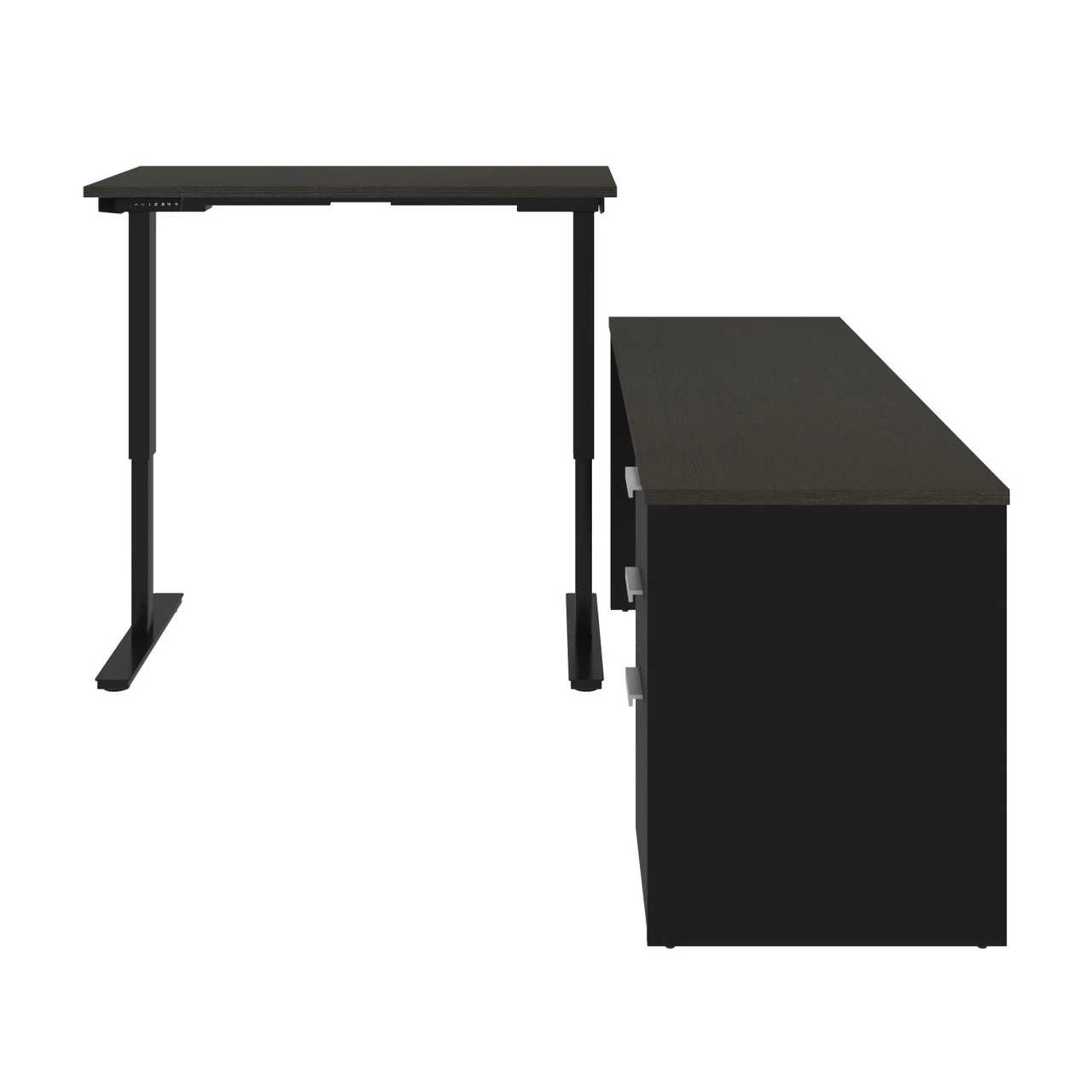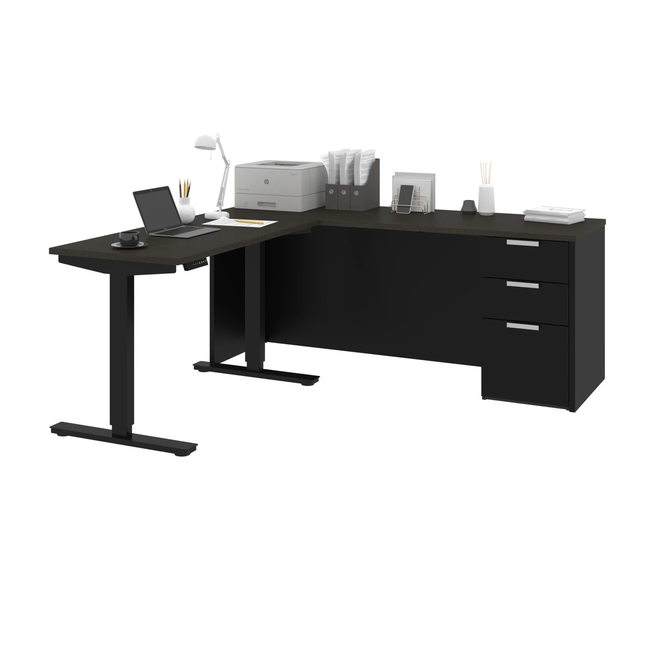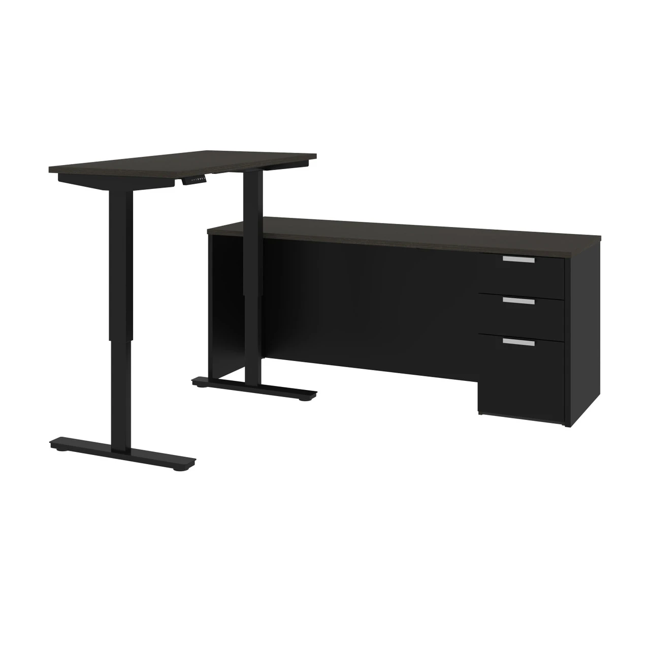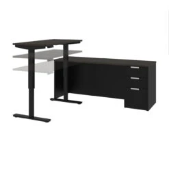 Bestar Pro-Concept Plus 72W L-Shaped Standing Desk with Pedestal In Deep Grey & Black – 110895-32Â