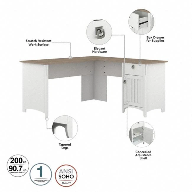 Bush Furniture Salinas Collection L-Shaped Desk with Storage Shiplap Gray and White –Â SAD160G2W-03