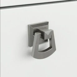 * Elegant metal drop pull hardware finished in Tumbled Pewter