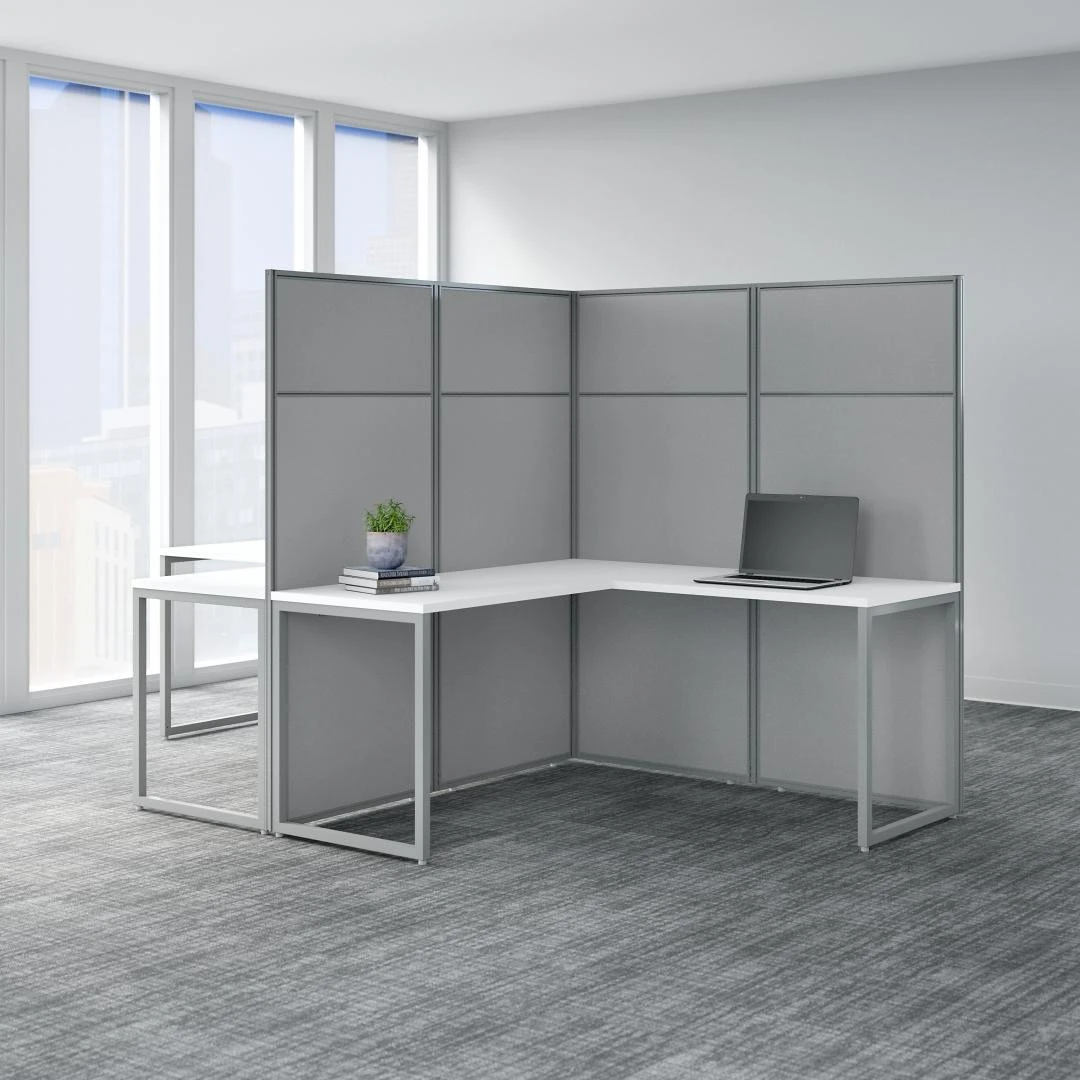 Bush Business Furniture Easy Office 60W 2 Person L Shaped Desk with 66H Cubicle Panel Pure White – EODH560WH-03K