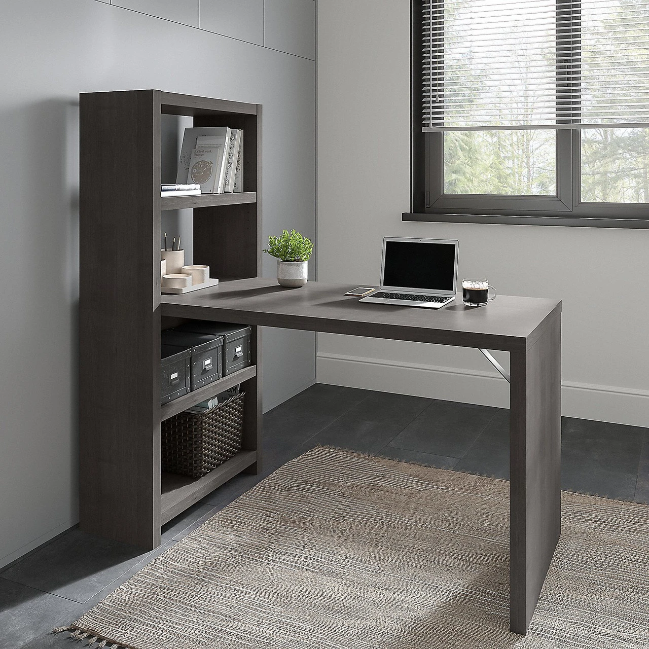 Bush Business Furniture Echo by Kathy Ireland 56W Bookcase Desk – KI60307. The Office by kathy ireland® Echo Bookcase Desk brightens the workspace, kitchen or craft room with a contemporary charm and unique space-saving design.Â
