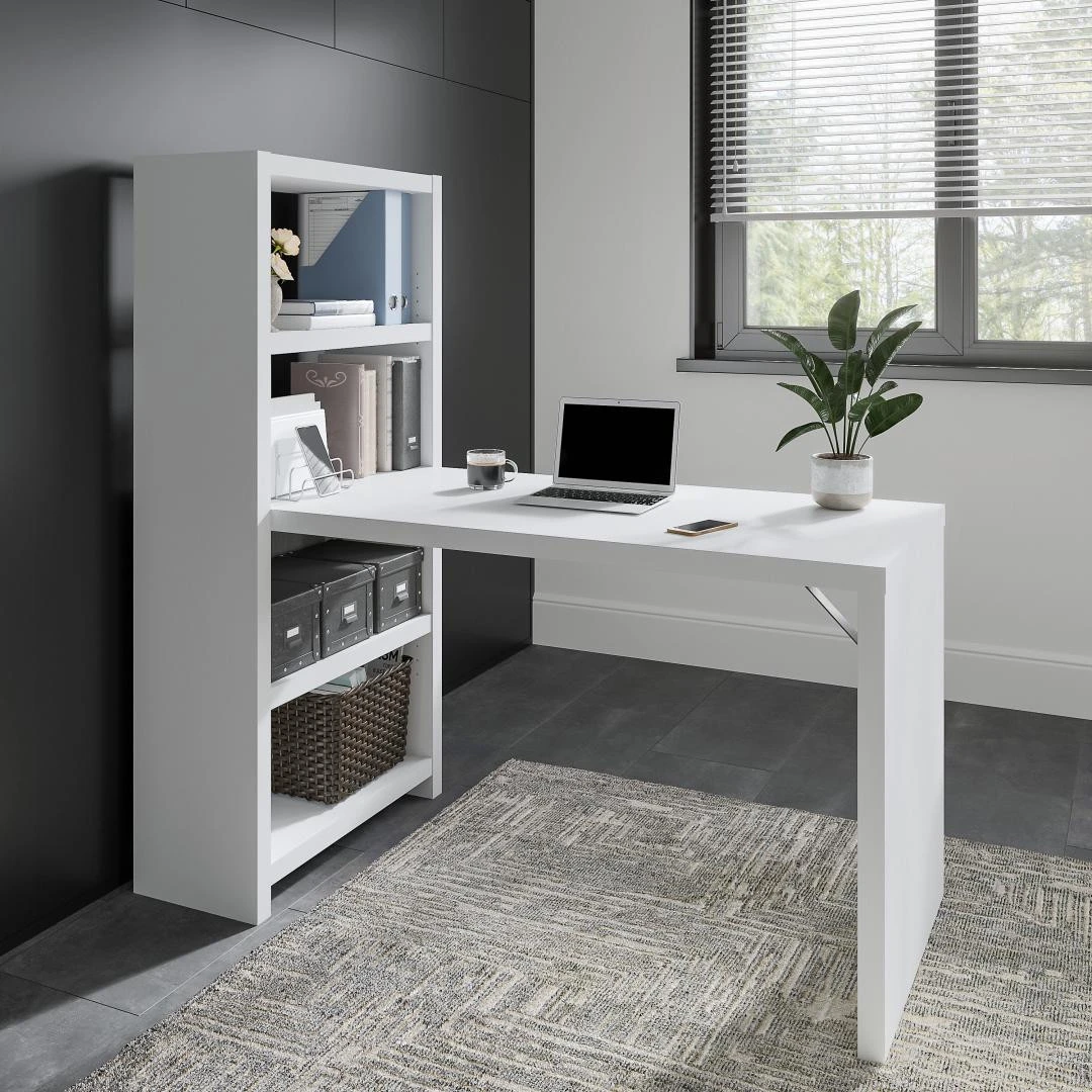 Bush Business Furniture Echo by Kathy Ireland 56W Bookcase Desk – KI60507-03. The Office by kathy ireland® Echo Bookcase Desk brightens the workspace, kitchen or craft room with a contemporary charm and unique space-saving design.Â