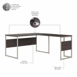 *Â Open metal leg design and finished privacy panel allow the corner desk to look great facing any direction