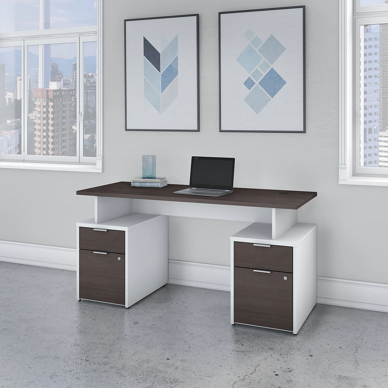 Bush Business Furniture Jamestown 60″W Desk w Drawers – JTN017SGWHSU