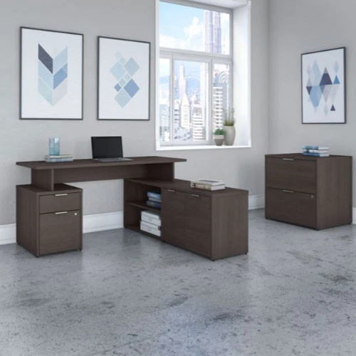 Bush Business Furniture Jamestown 60″W L-Shaped Desk w Lateral File – JTN022SGSUÂ