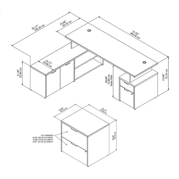 *Â Bundle includes: 72W Desk with 2 Drawer File Cabinet and Low Storage Return, 2 Drawer Lateral File Cabinet