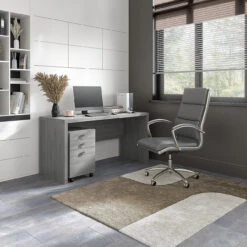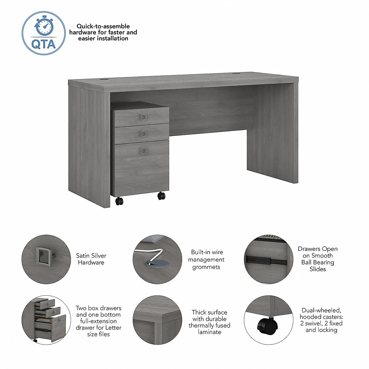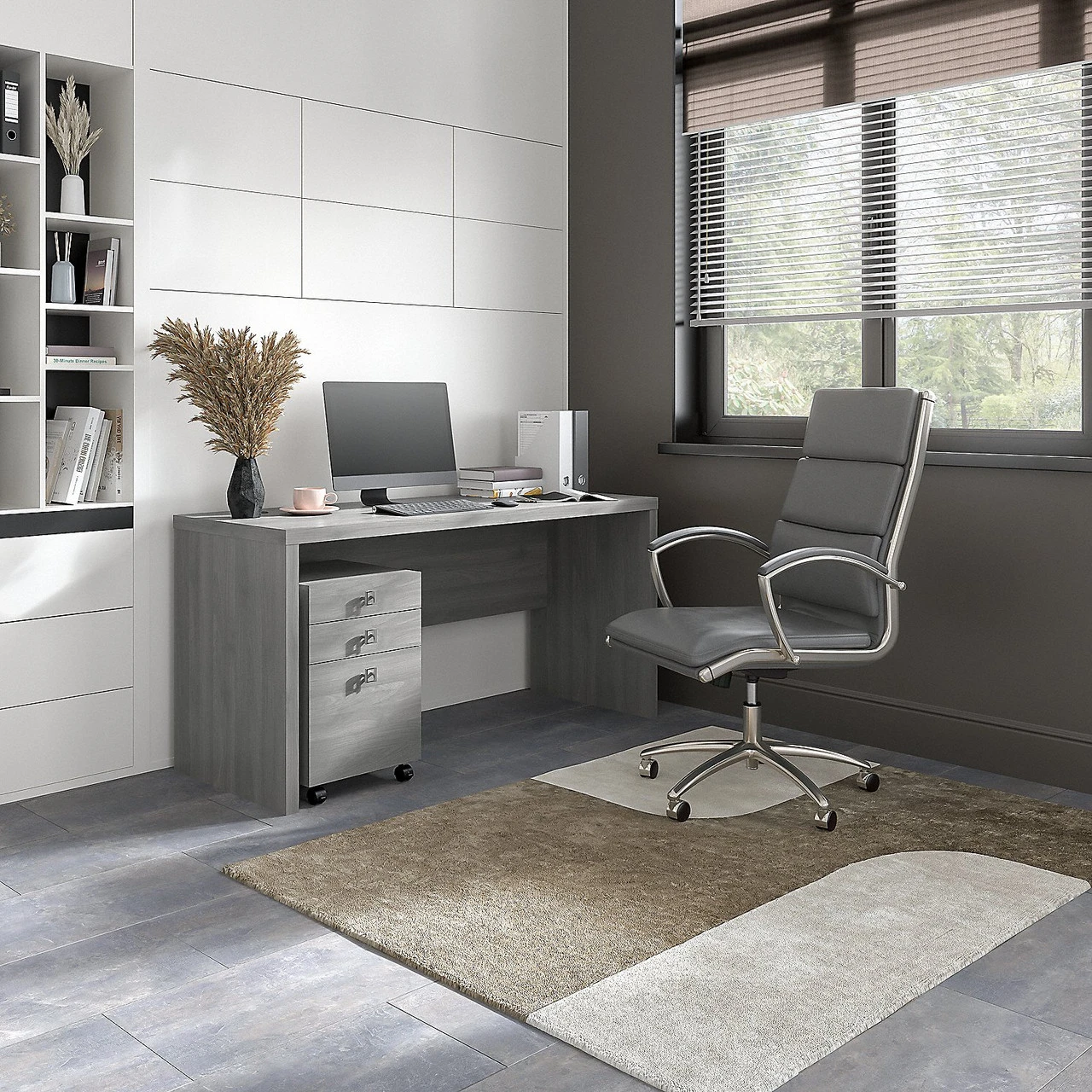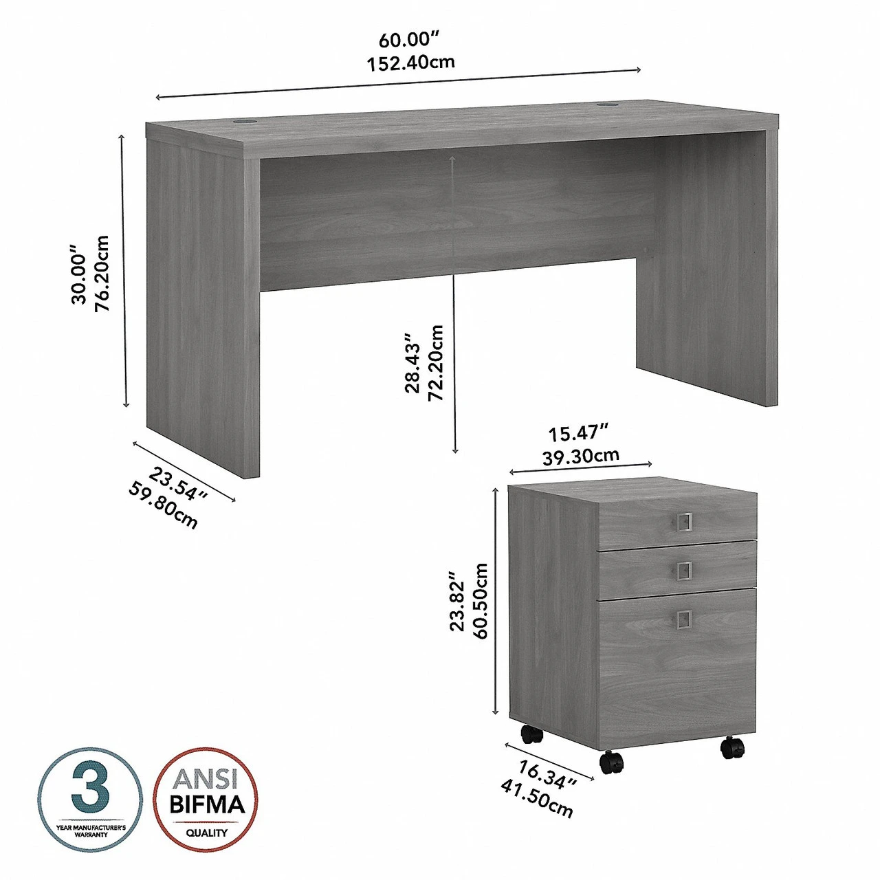Bush Business Furniture Kathy Ireland Echo 60W Credenza/Desk with 3 Drawer Mobile Pedestal Modern Gray – ECH003MG
