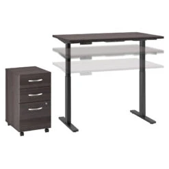 Bush Business Furniture Move 60 Series Height Adjustable Standing Desk w Storage Storm Gray 72 x 30 – M6S006SGSU. Have a healthy and productive day at the office with the Move 60 Series by Bush Business Furniture 48W x 30D Height Adjustable Standing Desk with Mobile File Cabinet.Â