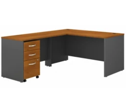 Bush Business Furniture Series C 60W L Shaped Desk with 3 Drawer Mobile File Cabinet in Natural Cherry – SRC146NCSU.