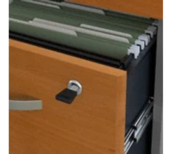 * Locking File Cabinet includes one full-extension drawer for letter, legal and A4-size paperwork and two drawers for miscellaneous office supplies