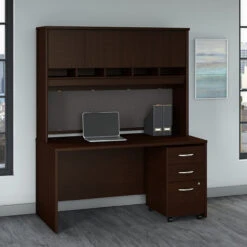 Bush Business Furniture Series C 60W X 30D Desk, Hutch and Mobile File Cabinet Mocha Cherry – SRC145MRSU