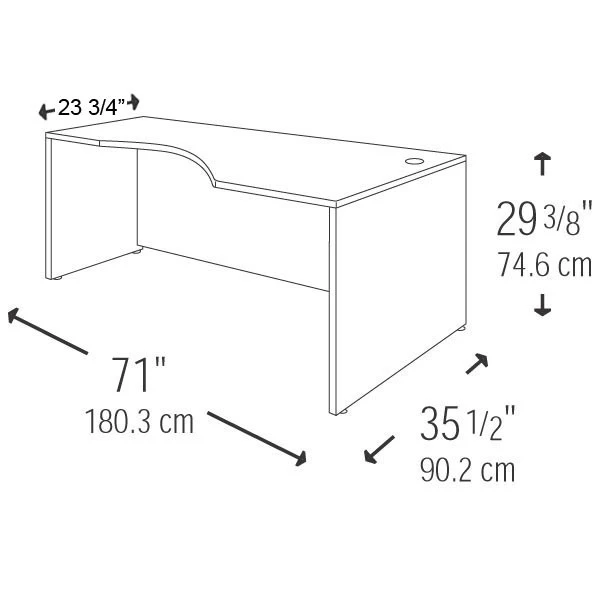 * Thermally fused laminate work surface, rugged edge banding and sturdy end panels fend off scratches and damage