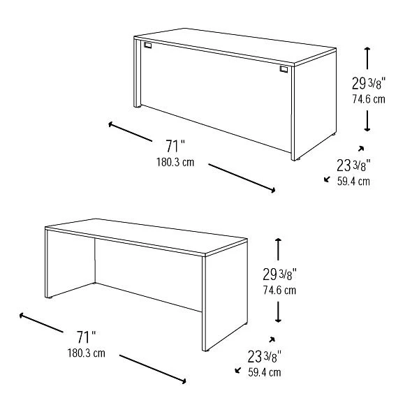 Overall Dimensions:Â 71 W X 23 3/8 D X 29 3/8 H
