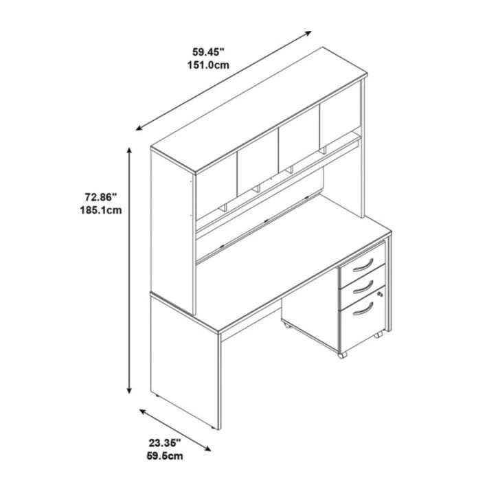1 – 60W Desk: 59 1/2 W X 23 3/8 D X 29 3/4 H