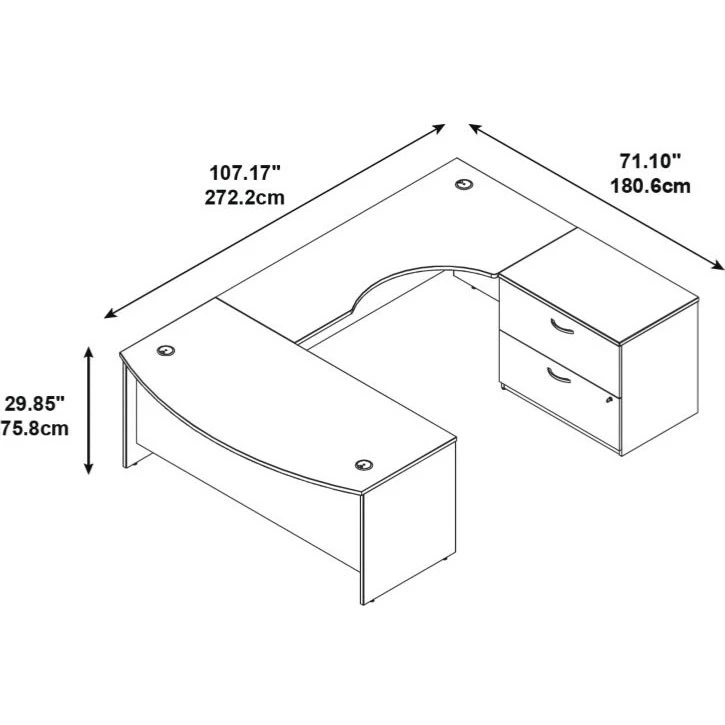 * Bundle Includes: 72W LH Corner Module, 72W Bowfront Desk, and 36W 2-Drawer Lateral File