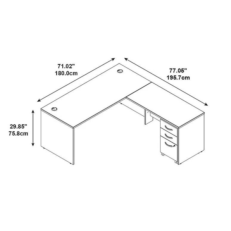 * L Shaped Desk design provides expansive work surfaces without taking up much floor space