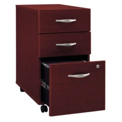 Bush Business Furniture Series C L-Shaped Desk with 48″ Return and Mobile File Cabinet in Mahogany 72″W- SRC001MASU. The options are endless with Series C. This affordable office furniture boasts quality craftsmanship to withstand the rigors of a 40-plus hour work week. Seven stylish finishes blend seamlessly in any environment. Multiple layout options meet the needs of numerous workspaces, from the private or home office to reception areas and conference rooms. Series C evolves with your preferences, allowing you to reconfigure your workspace as required with a complete line of coordinated commercial office furniture. American made with U.S. and imported parts.
