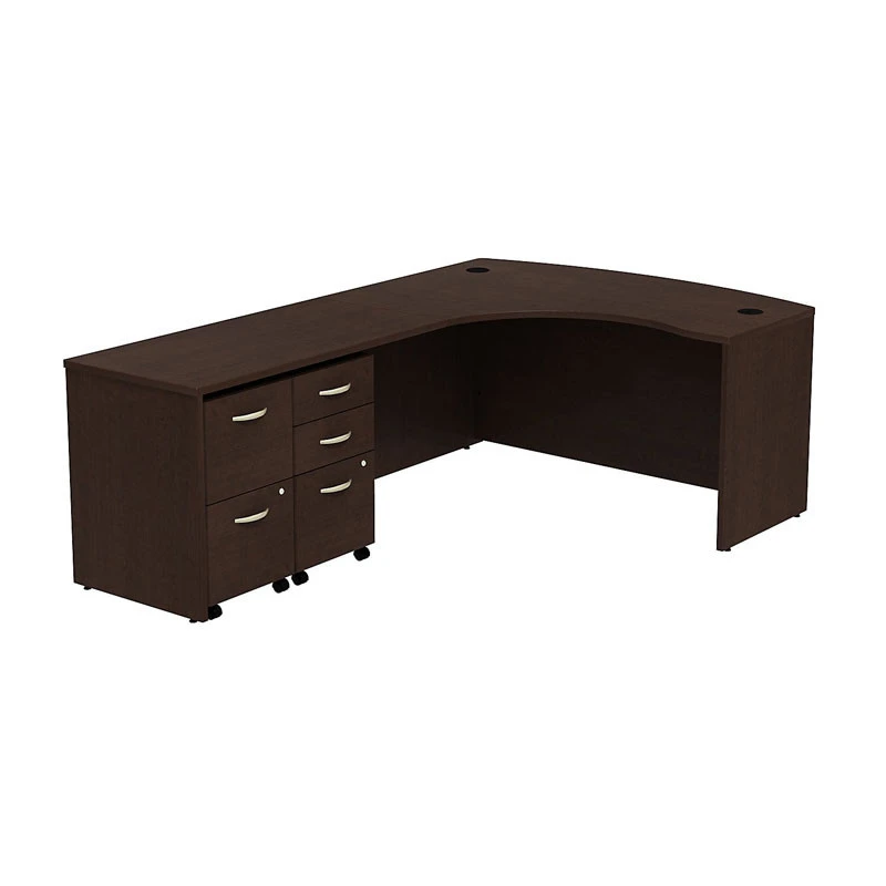 Bush Business Furniture Series C Bowfront L-Desk with 2 Mobile Pedestals Mocha Cherry Left- SRC034MRLSU