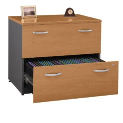 * File drawers feature full-extension, ball-bearing slides and accommodate letter- or legal-size files