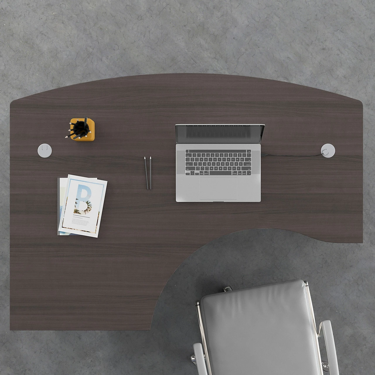 *Â 60W x 43D surface offers space to spread out and integrated cable management to conceal computer cords