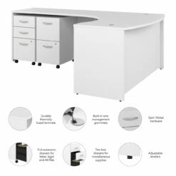 Bush Business Furniture Studio C 60W x 43D Left Hand L-Bow Desk with Mobile File Cabinets – STC075WHSU