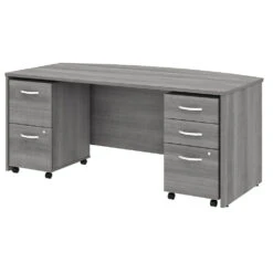 Bush Business Furniture Studio C Bow Front Desk with 2 Pedestals 72″ – STC012PGSU. Give your office the quality you need and the style you deserve with the Bush Business Furniture Studio C Collection. The popular, classic office furniture design receives a contemporary update with trendy White and Storm Gray finish options to fit seamlessly in a private office or as part of a larger environment.