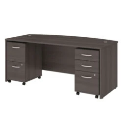 Bush Business Furniture Studio C Bow Front Desk with 2 Pedestals 72″ – STC012SGSU. Give your office the quality you need and the style you deserve with the Bush Business Furniture Studio C Collection. The popular, classic office furniture design receives a contemporary update with trendy White and Storm Gray finish options to fit seamlessly in a private office or as part of a larger environment.