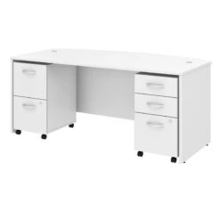 Bush Business Furniture Studio C Bow Front Desk with 2 Pedestals 72″ White – STC012WHSU. Give your office the quality you need and the style you deserve with the Bush Business Furniture Studio C Collection. The popular, classic office furniture design receives a contemporary update with trendy White and Storm Gray finish options to fit seamlessly in a private office or as part of a larger environment.
