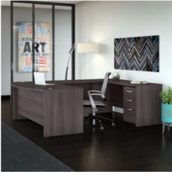 Bush Business Furniture Studio C Bow Front U-Shaped Desk Package 72″ – STC004SGSU. Give your office the quality you need and the style you deserve with the Bush Business Furniture Studio C Collection. The popular, classic office furniture design receives a contemporary update with trendy White and Storm Gray finish options to fit seamlessly in a private office or as part of a larger environment.