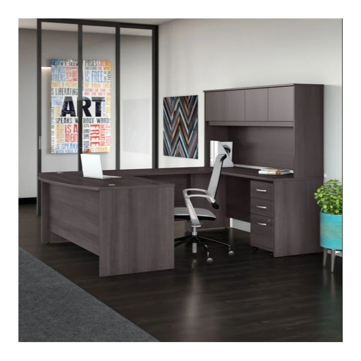 Bush Business Furniture Studio C Bow Front U-Shaped Desk with Hutch 72″ Storm Gray – STC003SGSU. Give your office the quality you need and the style you deserve with the Bush Business Furniture Studio C Collection. The popular, classic office furniture design receives a contemporary update with trendy White and Storm Gray finish options to fit seamlessly in a private office or as part of a larger environment.