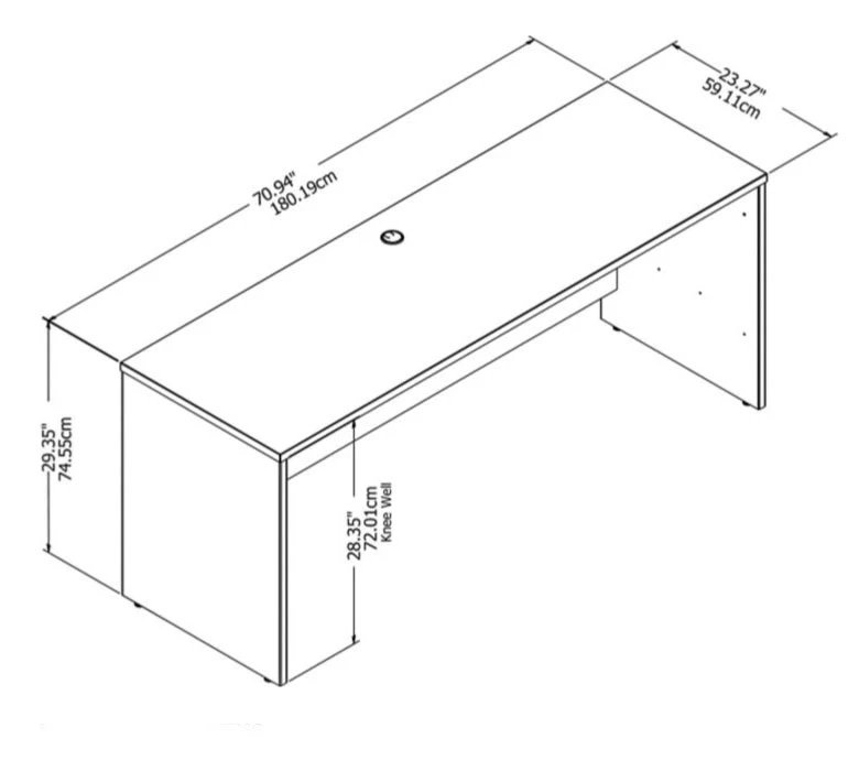 * Assembled Dimensions: 71.10″ W X 23.35″ D X 29.84″ H