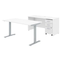 Bush Business Furniture Studio C Desk and Height Adjustable Standing Desk Package 60″ White – STC017WHSU. Give your office the quality you need and the style you deserve with the Bush Business Furniture Studio C Collection. The popular, classic office furniture design receives a contemporary update with trendy White and Storm Gray finish options to fit seamlessly in a private office or as part of a larger environment.