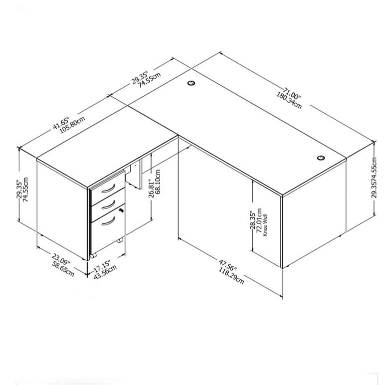 * L Shaped Desk surface offers space to spread out and integrated cable management to conceal computer cords