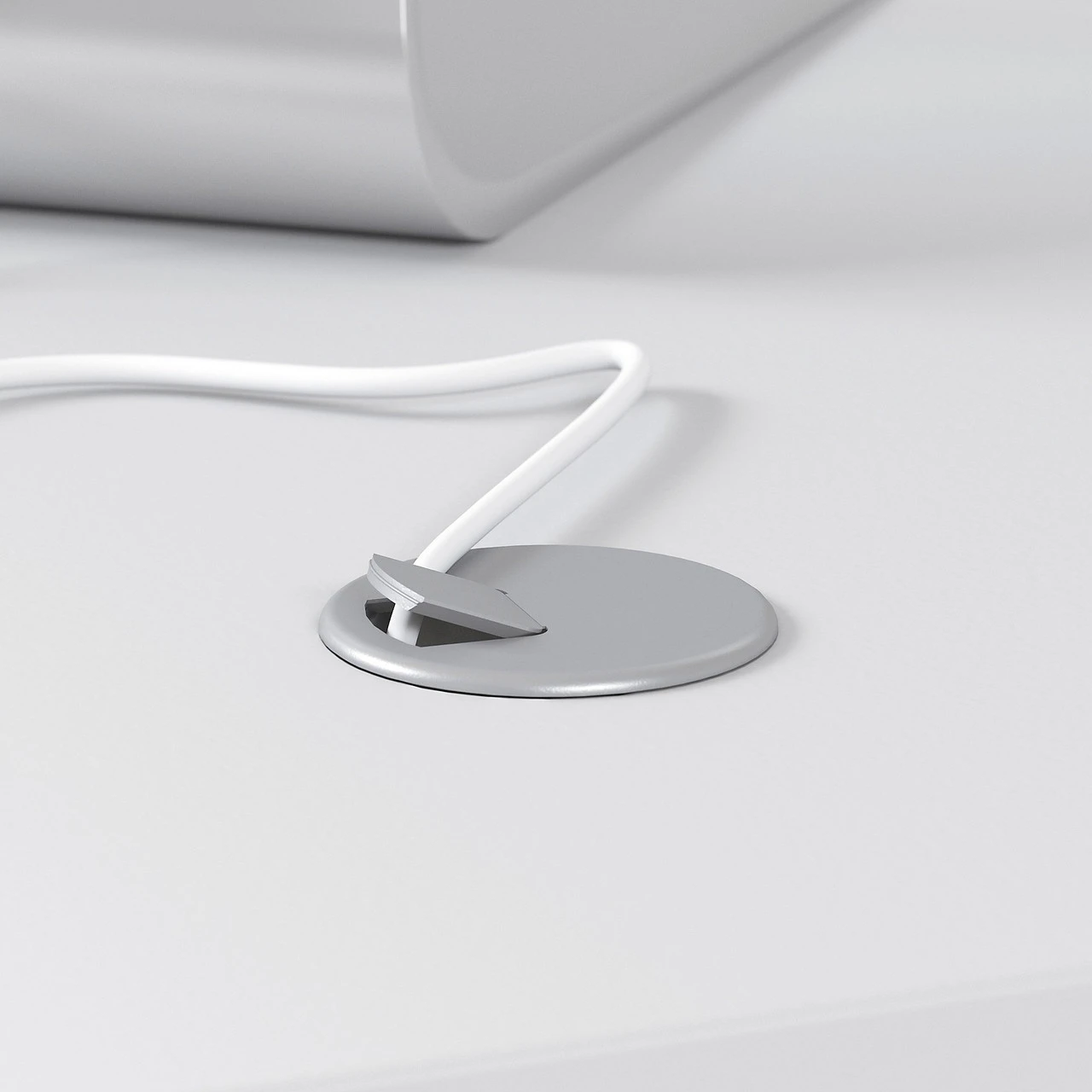 Desktop includes built-in wire management grommets to keep cords and cables out of the way while you work