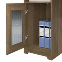 * Storage cabinet features a stylish fluted glass door to conceal work materials