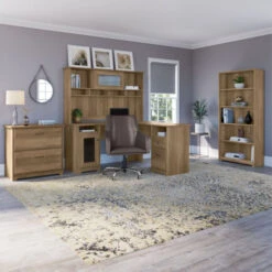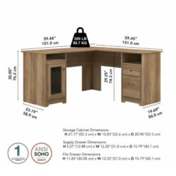 Bush Cabot Collection 60W L Shaped Computer Desk Reclaimed Pine – WC31530-03K