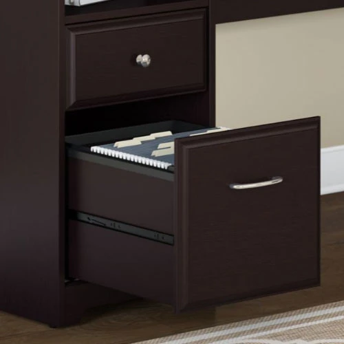Full-extension file drawer in Computer Desk glides on smooth ball bearing slides for an easy reach to the back