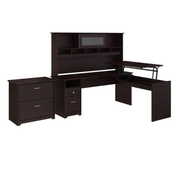 Fixed desk surface, Hutch and File Cabinet meet ANSI/SOHO standards; Lift-n-Lock desktop meets Bush Furniture Mechanical Lift System standards