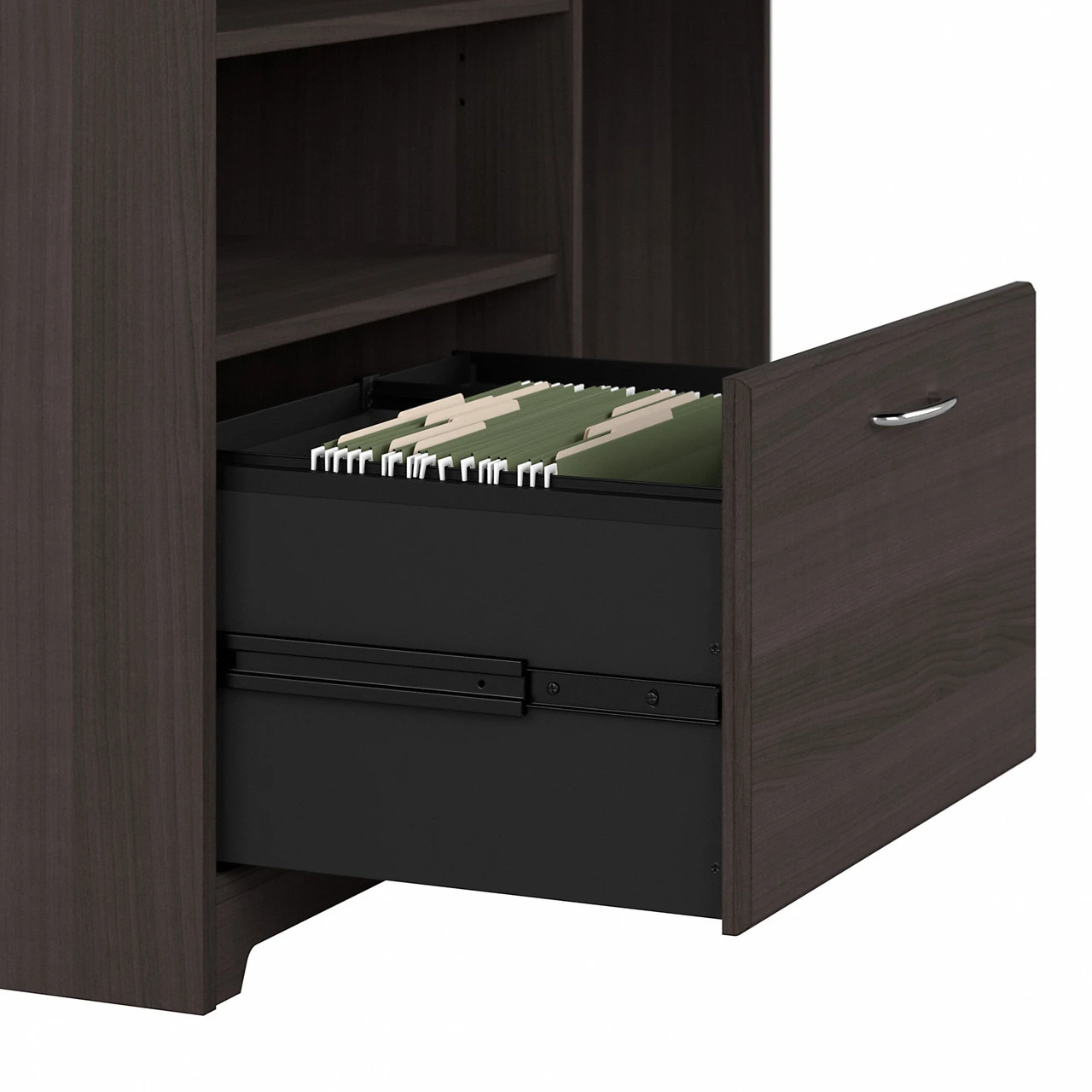 Bush Cabot Collection Corner Desk Package Heather Gray – CAB008HRG. Simple, elegant styling, ample storage and smart technology integration features make Cabot a perfect fit for the home office.