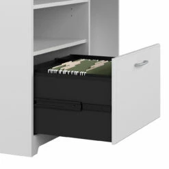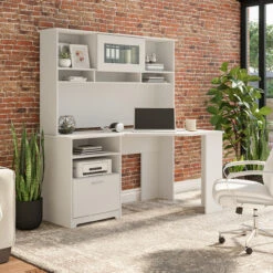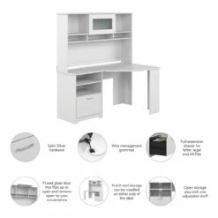 Bush Cabot Collection Corner Desk Package – CAB008WHN. Simple, elegant styling, ample storage and smart technology integration features make Cabot a perfect fit for the home office.