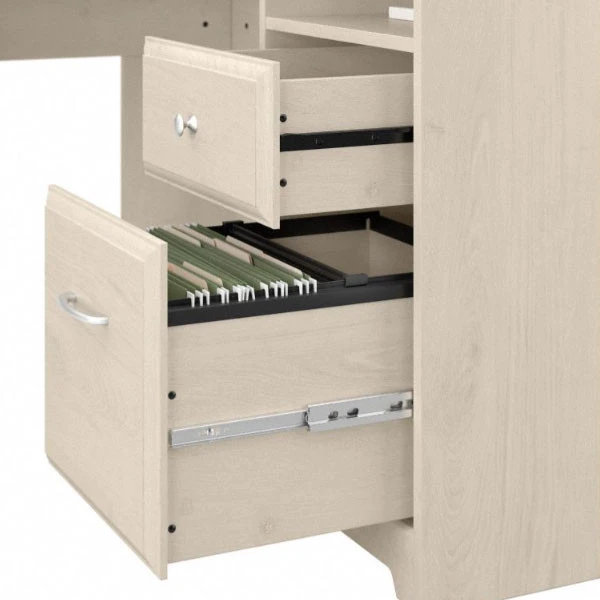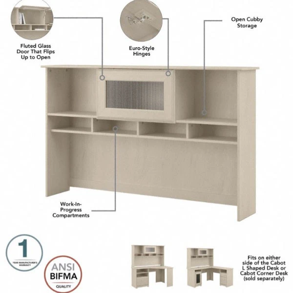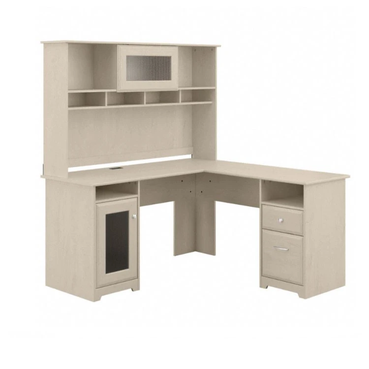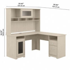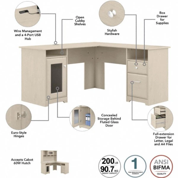 Bush Cabot Collection 60 L-Shaped Desk with Hutch – CAB001LW. Simple, elegant styling, ample storage and smart technology integration features make Cabot a perfect fit for the home office.