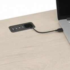 * Corner desk surface includes built-in wire management and 4-port USB hub for connecting electronic devices