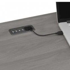 * Corner desk surface includes built-in wire management and 4-port USB hub for connecting electronic devices