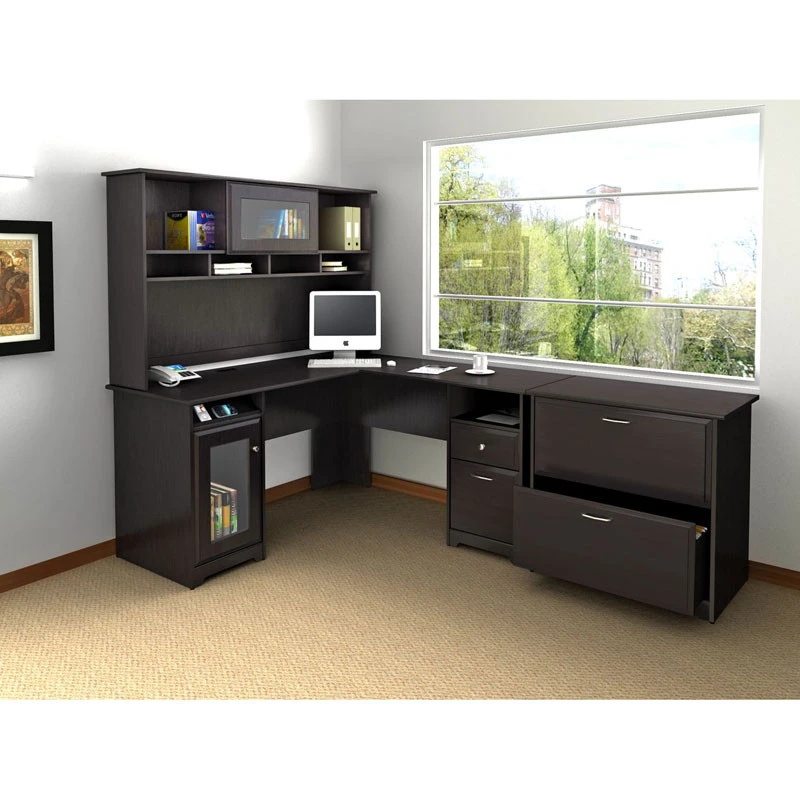 * Cabot Collection corner suite features 60 L-desk with matching hutch, lateral file