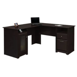 Bush Cabot Collection L-Shaped Desk 60 Package – CAB005EPO . Simple, elegant styling, ample storage and smart technology integration features make Cabot a perfect fit for the home office.